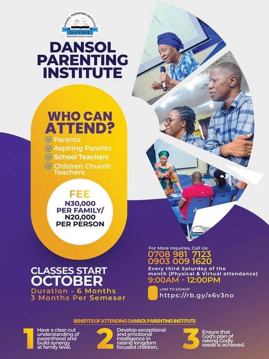 and one of our key initiatives is the Dansol Parenting Institute (DPI), a transformative programme for intentional and Godly parenting. It equips parents with valuable insights, inspiration, and support for the parenthood journey.